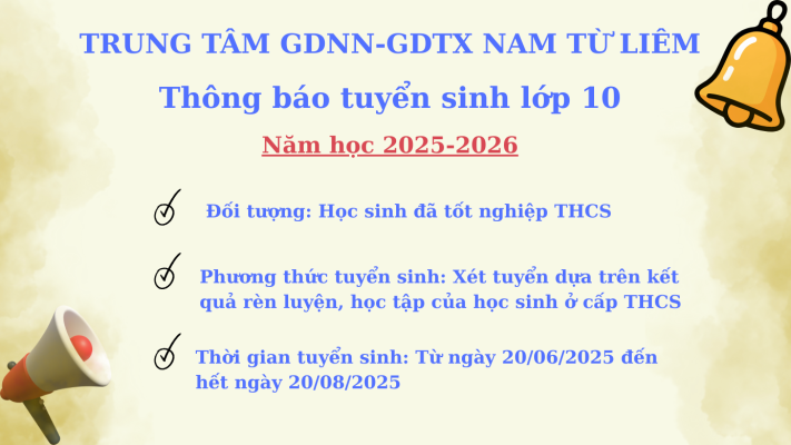 THÔNG BÁO TUYỂN SINH LỚP 10 THPT NĂM HỌC 2025-2026